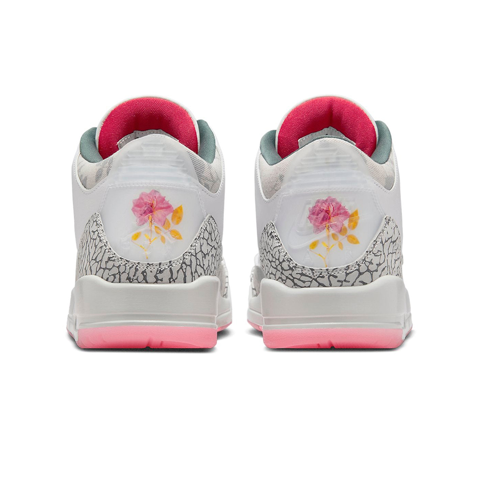 The Air Jordan 3 Retro ‘Wings Foundation’ is a striking sneaker set to release in Fall 2024. Its design features a white leather base adorned with floral accents, creating a unique and eye-catching look. The color palette includes white, fire red, off-white, vintage green, and rose. With an iconic silhouette, visible Air cushioning, and meticulous craftsmanship, this shoe is a must-have for sneaker enthusiasts.